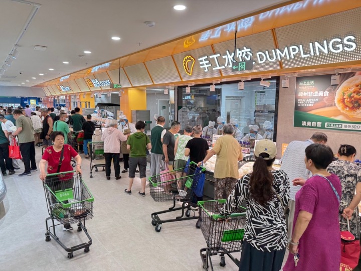 南方店正式营业不到半小时,店内就涌入了2000多名顾客。陈明接受采访时,嗓子都是哑的,因为包括他在内的超市全体员工,早已提前“高速运转”起来。“试营业那天,本来只想跑一下系统,没想到顾客购买热情高涨。”