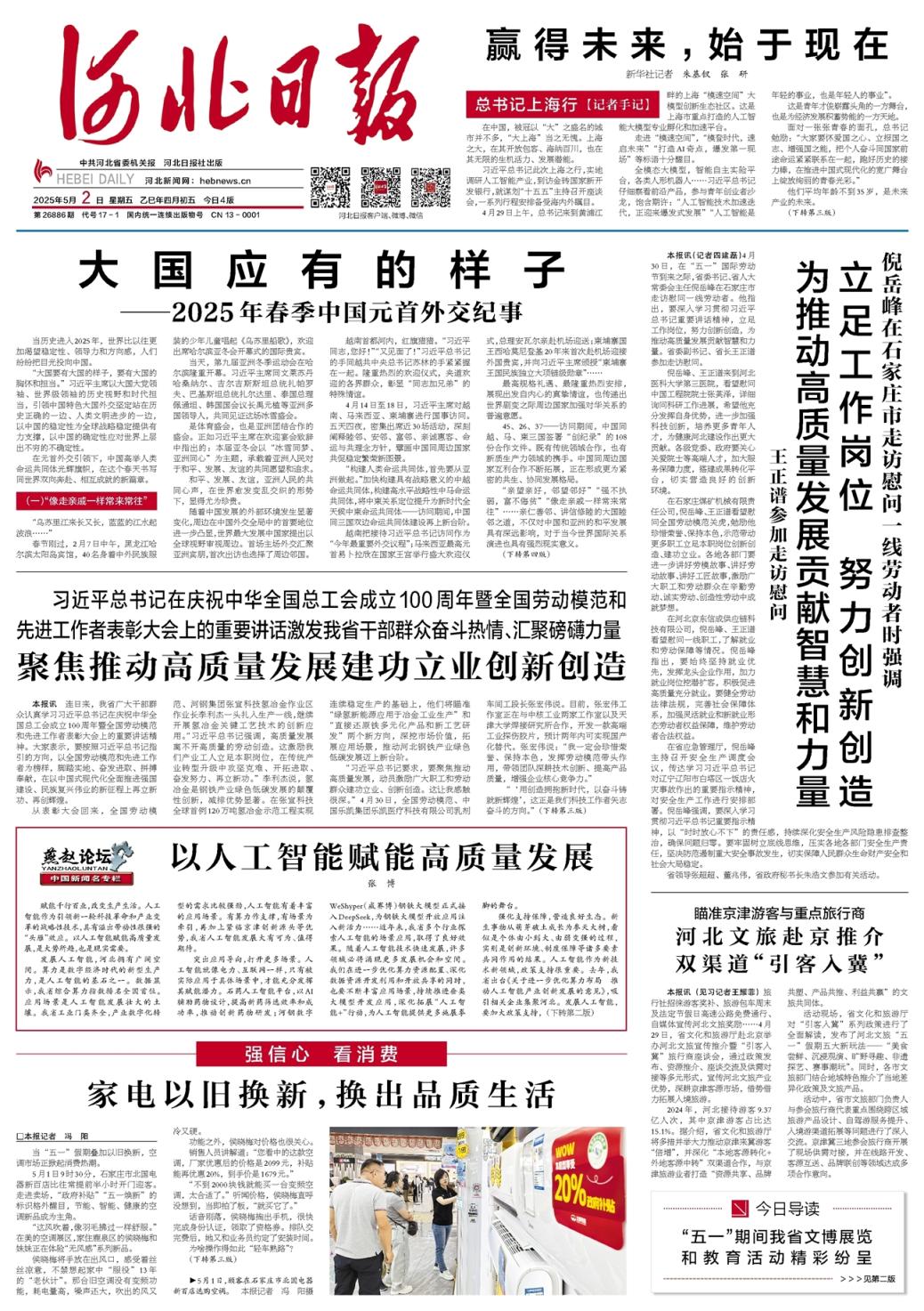 “五一”假期,出行热情高涨,人们选择旅游目的地时更注重文化体验。去博物馆研学打卡,到“太行泉城”感受泉文化,穿战国袍沉浸式体验成语乐趣……在京津冀地区,持续高涨的“文博热”成为一道靓丽的旅游风景线。此次周口店遗址文化展落地河北博物院,不仅是京冀两地文化遗产的对话,更是一场跨越时空的文化共鸣。详情>>