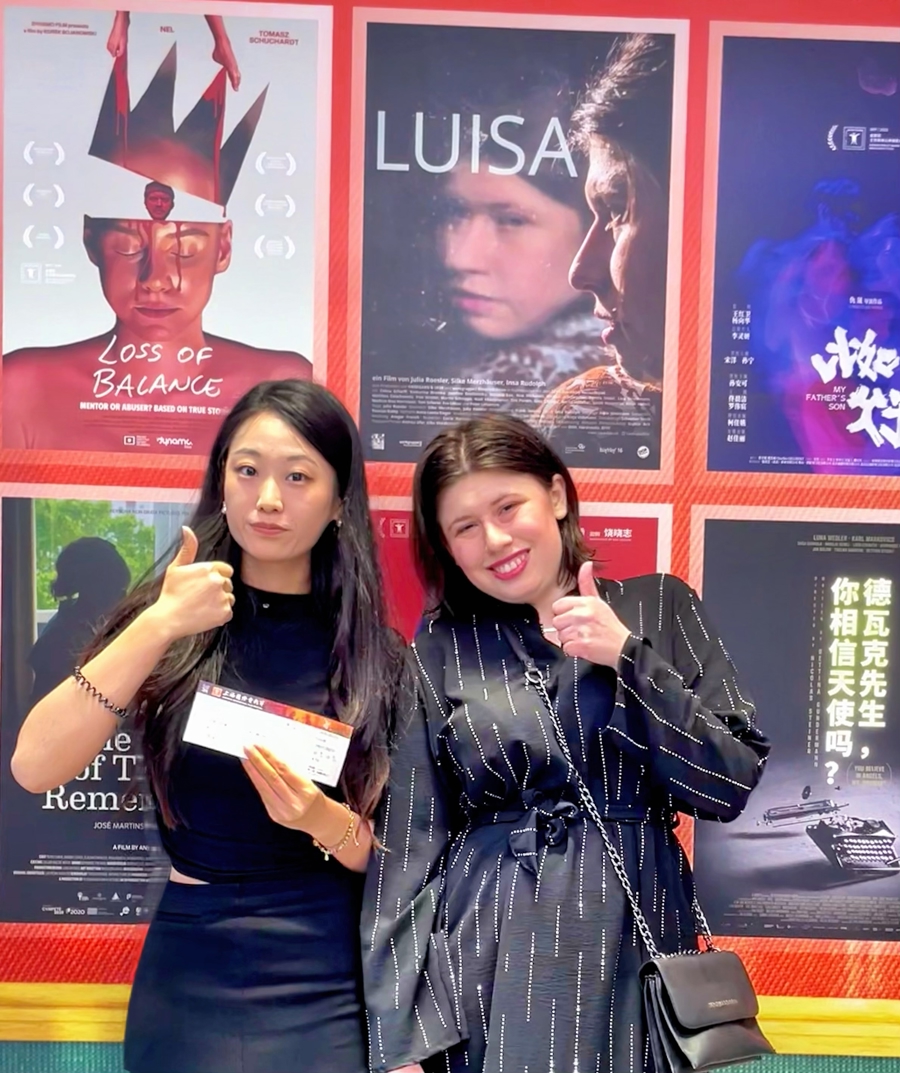 “我还没说完。”来不及分享未来几天的看片计划,陆懿继续跟记者分享上周日的电影时光,“那天第二场还没看,一上电梯就看到《路易莎》女主演,于是在电影海报下又快乐‘集邮’了。看完《路易莎》才意识到原来主演真的全是“唐宝”(唐氏综合征),挺震惊的,因为和女主演沟通的时候除了速度有点慢,她的表达和理解力完全让我没察觉!这份真诚和专业太动人,电影本身也超棒。”